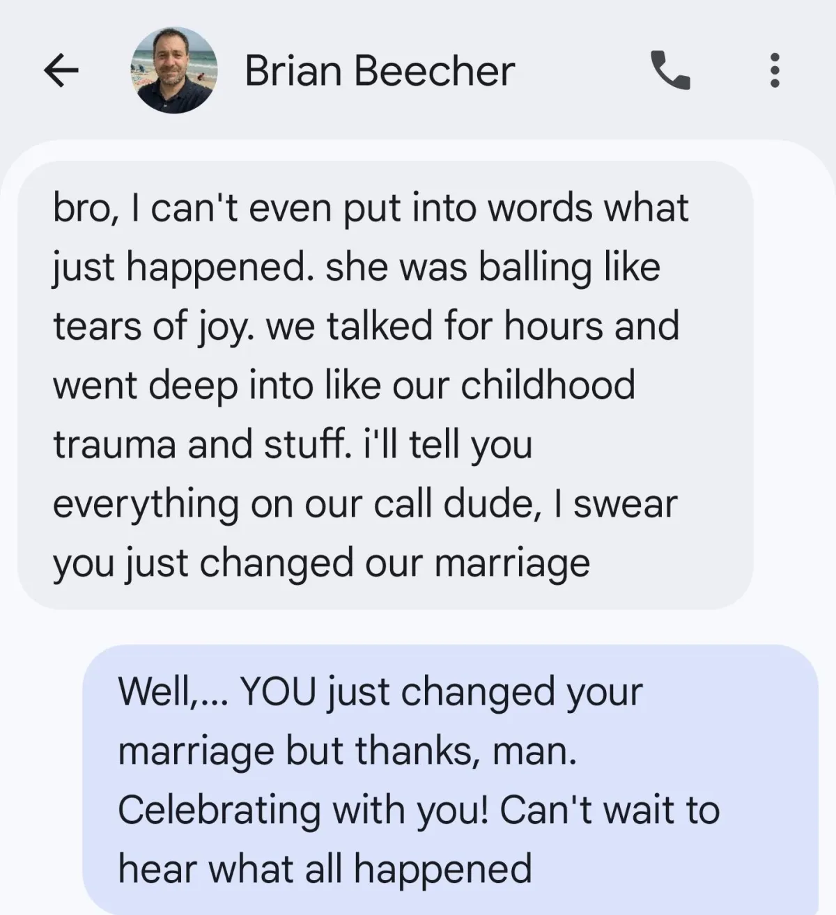 Through The Sovereign Man, Brandon stepped into a new way of being, rooted in surrender, spiritual vitality, and masculine presence. Romance was reignited. His leadership became more authentic. And for the first time in years, he began living from conviction rather than fear.